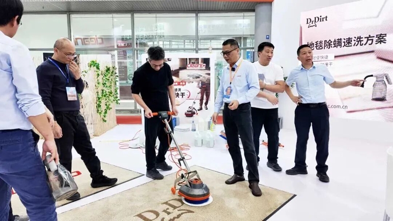 其中DrDirt污渍大夫聚焦“绿色清洁+省心运营”核心理念,推出“客房地毯专项速洗系统”。以“简便快捷、低成本、节能环保”三大核心优势为酒店、写字楼等场景提供革新性清洁解决方案,现场引发广泛关注。