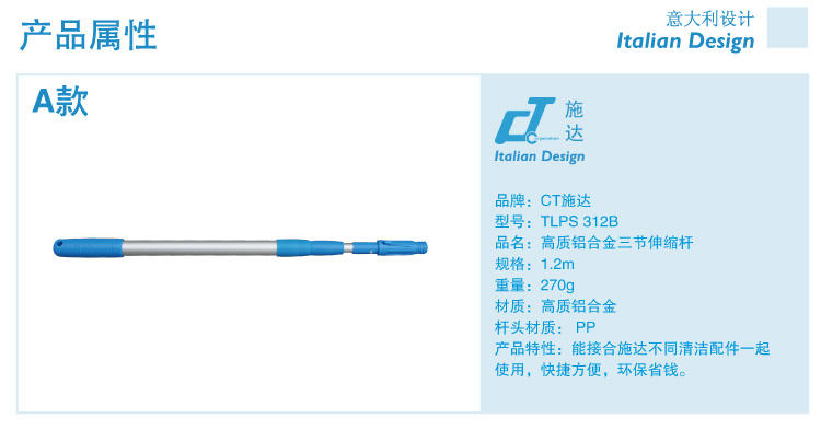CT施达 光身不包膜快速锁伸缩杆 1.2米