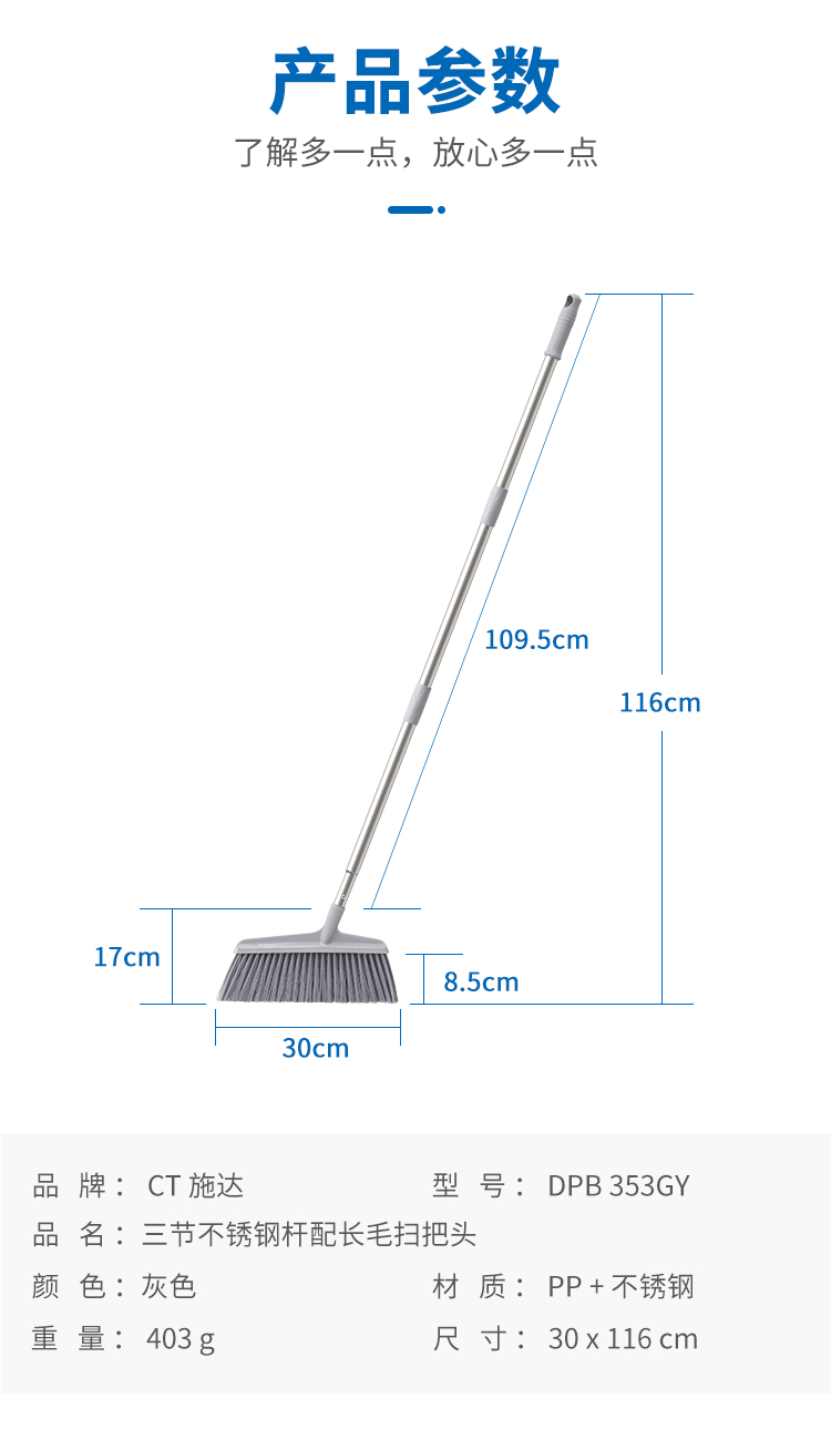 施达CT 不锈钢三节杆扫把